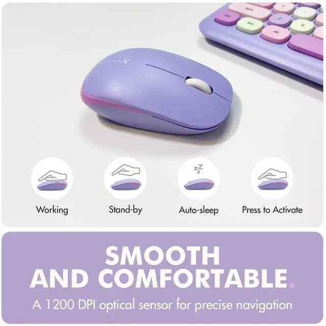 Aesthetic Keyboard to Express Yourself: Turn your plain desk into a place you feel inspired to work on. Our purple keyboard and mouse combo helps you feel more motivated, confident, and in control of your workspace.
