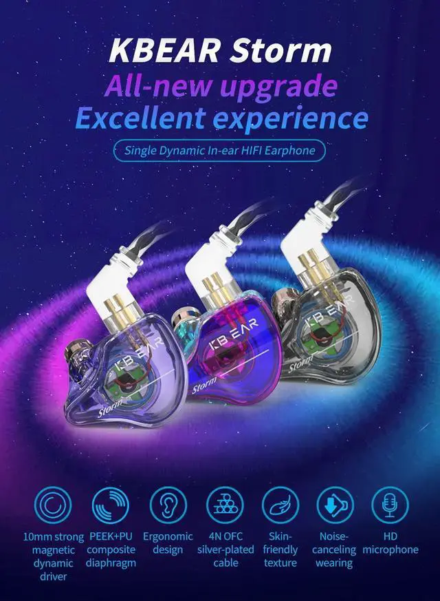 Most MusiciansChoice: Kbear Storm in ear monitor headphones adopts 10mm strong magnetic dynamic driver&PEEK+PU composite diaphragm.10mm strong magnetic dynamic driver can provide high resolution and wide dynamic range.PEEK+PU flagship diaphragm can achieve high-level timbre and listening experience.Let you get an excellent experience in the ocean of music.