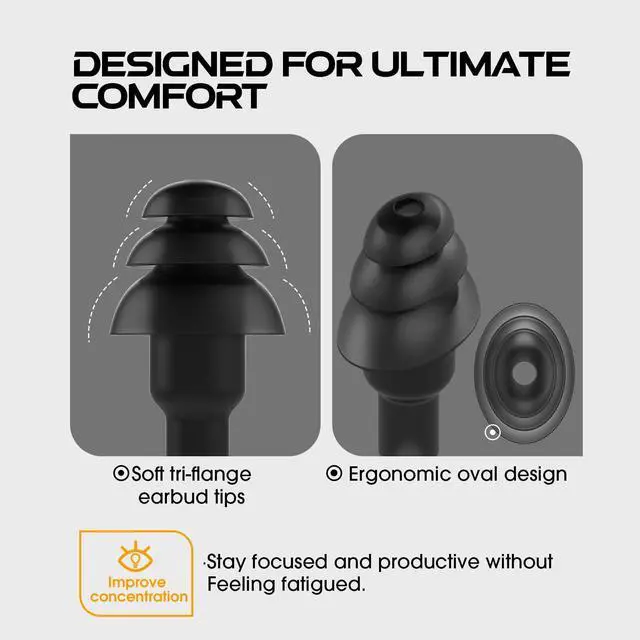 Designed for Comfort: Tri-flange, ergonomic in-ear tips mold to your ear for a secure, comfortable fit. They block out harmful noise, making them ideal for long-term use while enjoying music at work