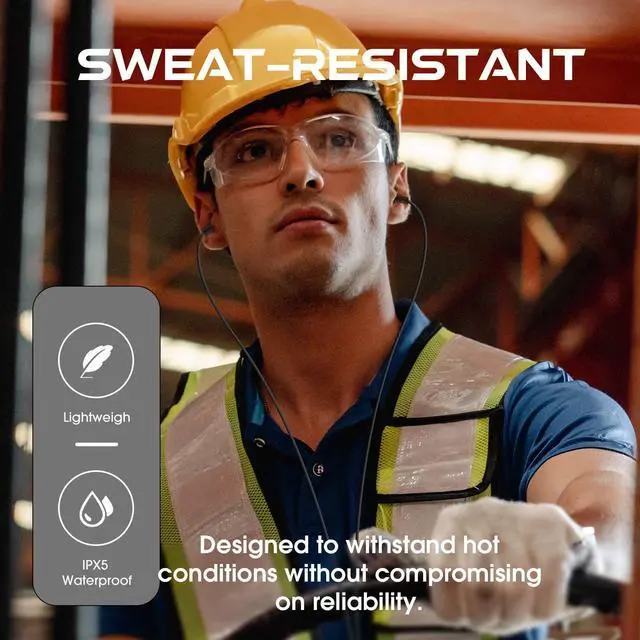 MIPEACE Work Earbuds Headphones, Ear Plug Headphones for Work-Noise isolating Earbuds Earphones for Industrial Safety Construction (Black)