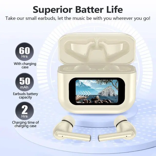 kurdene K6 Wireless Earbuds Bluetooth 5.3 in Ear Light-Weight Headphones, LED Full Color Touchscreen, Built-in Microphone Headset, Immersive Premium Sound with Deep Bass for Sport -Skin