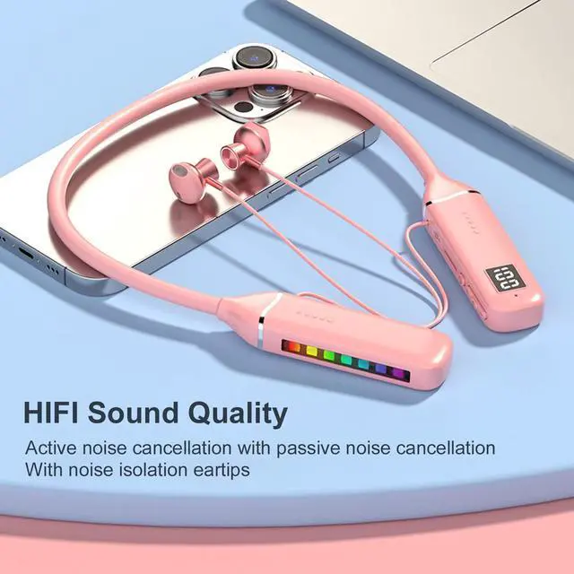 [RGB Light] Ergonomically shaped neckband Bluetooth headphone with cool RGB LEDs on the outside of the headphone provides multi color slow flash auto switching backlight lighting when in use, making it more fun to enjoy music and dance and cooler to play games. Support breathing light, fade and single color mode.
