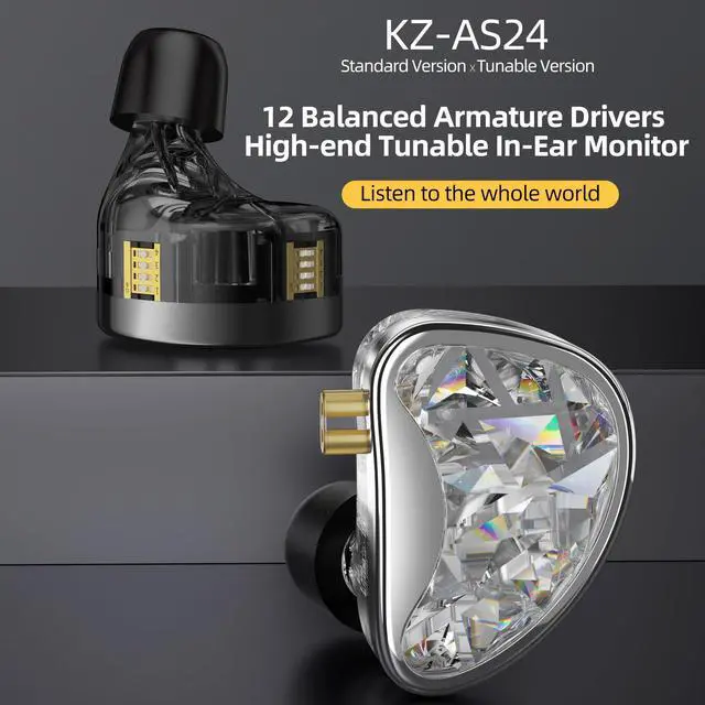 Tunable Version Or Standard Version to ChooseKZ AS24 In Ear Headphones Wired black color for the Tunable Version,which with dual tuner & 8 level swithes, earphones can be adjusted according to personal music preferences, such as bass mode, pop mode, vocal mode, a headset to get a variety of different feelings. silver color for the Standard Version,which has delicate and gentle sound quality, and the three-frequency balance is full.