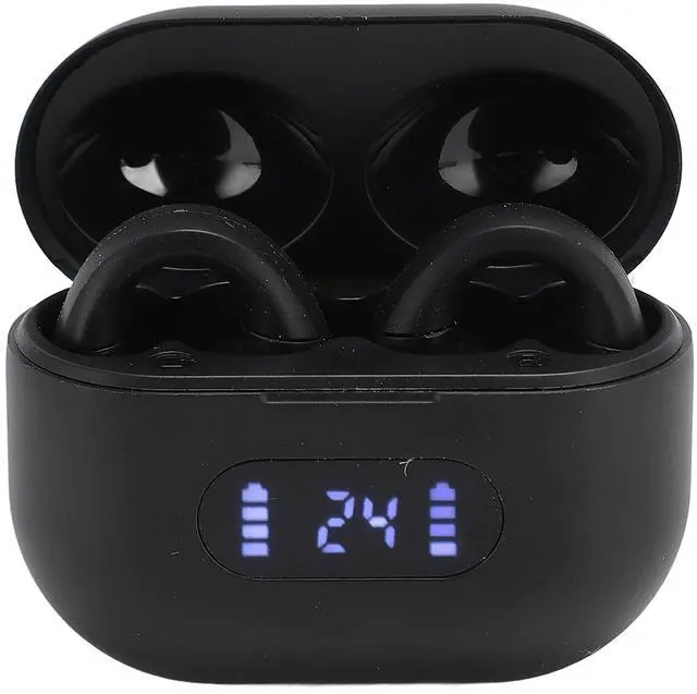 LONG BATTERY LIFE: The clip on earphones are designed with LED power digital display, the earphones can play continuously for 56 hours, and after fully charged, you can use the charging case to play music for 30 hours.