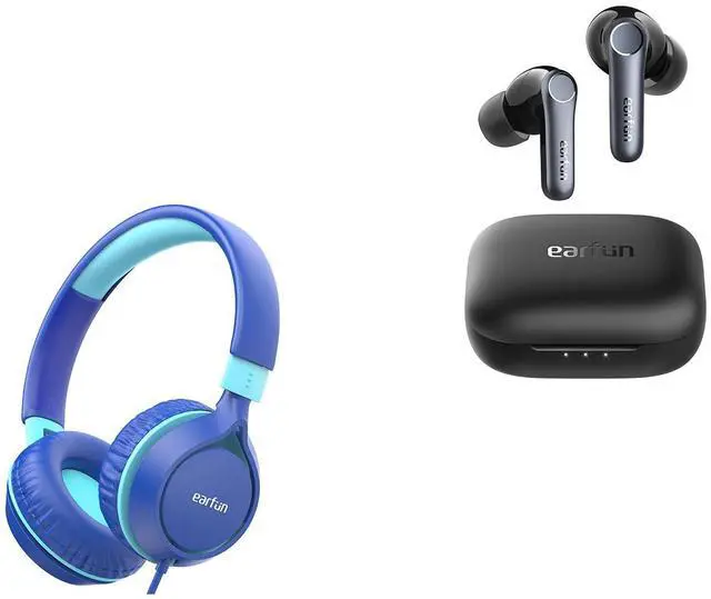 EarFun S1 Kids Headphones, Foldable Wired Headphones for Kids, 85dB Volume Limit Air Pro 4 Adaptive Hybrid Noise Canceling Wireless Earbuds, Qualcomm Snapdragon Sound, aptX Lossless