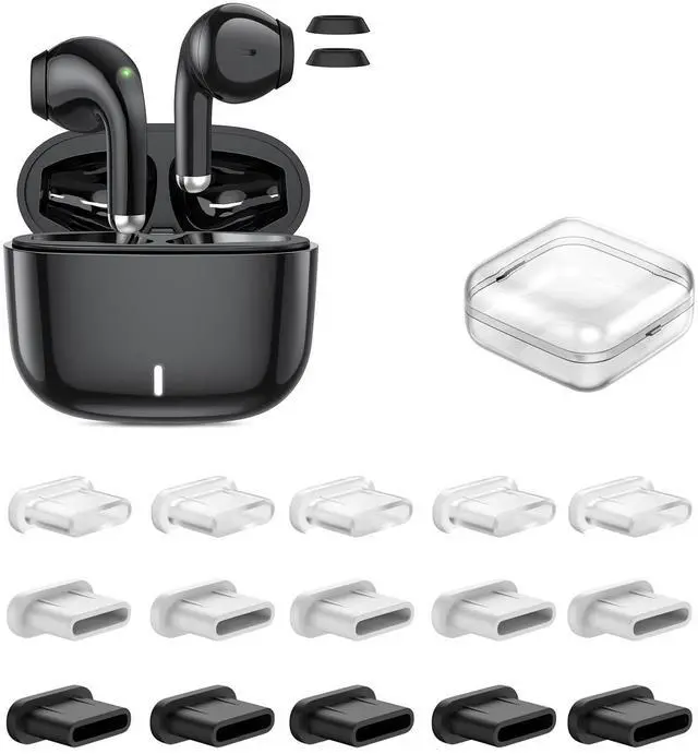 ACAGET Wireless Headphones + 15 Pcs USB Type C Anti Dust Caps for Samsung iPhone iPad and More USB C Devices, Noise Canceling Wireless Bluetooth Earbuds & 15 Pcs Dustproof Cover Cap with Storage Case