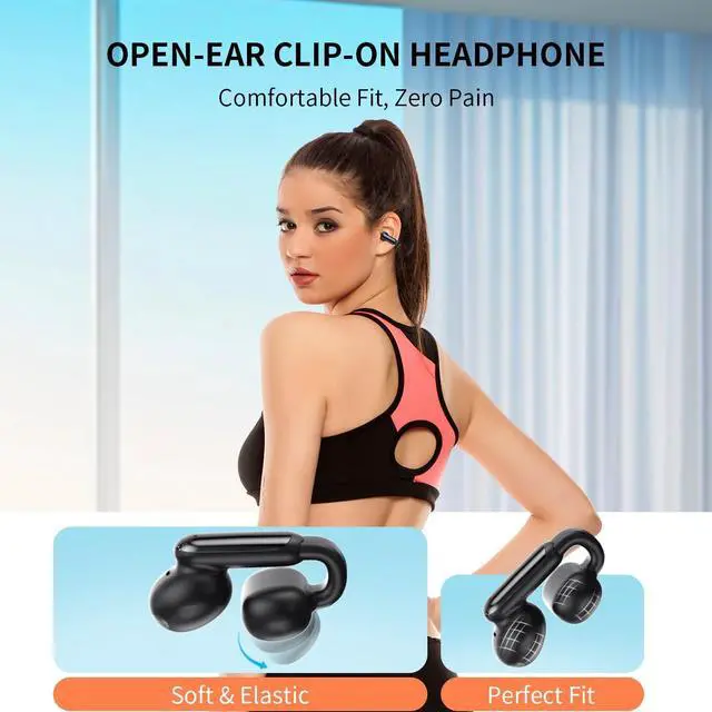 Stable & Comfortable The ergonomic open ear clip wireless earbuds, design uses soft material to ensure that the open ear earbuds fit the ear securely and are not easy to fall off. It won't hurt your ears even if you wear it for a long time.