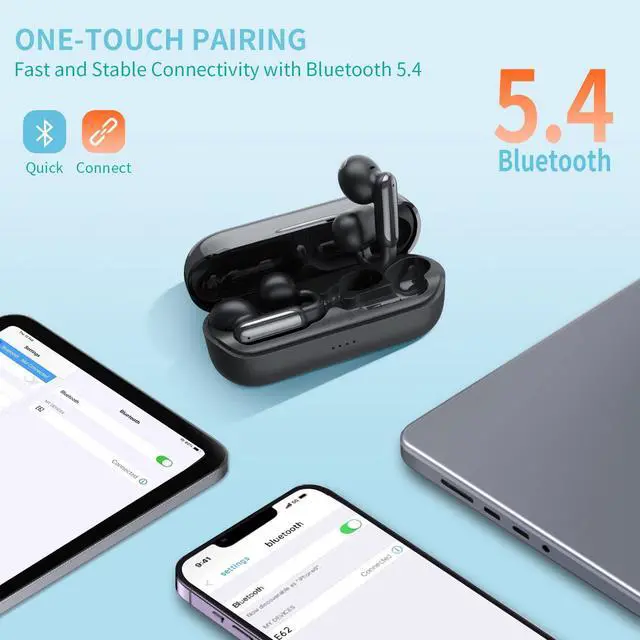 Bluetooth 5.4 Over ear bluetooth earbuds equipped with the latest Bluetooth 5.4 technology, it provides clearer sound quality and more stable and fast connection. 33 feet of wireless connection range, bringing you a smoother audio experience.