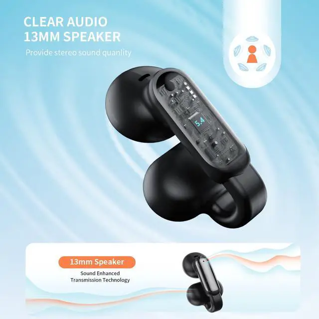 Clear Voice Call Wireless over the ear earbuds use high-performance audio drivers to deliver clear and transparent sound quality, 13mm mega-speaker accurately reproducing every sound, bringing you a pure and dynamic native listening experience.