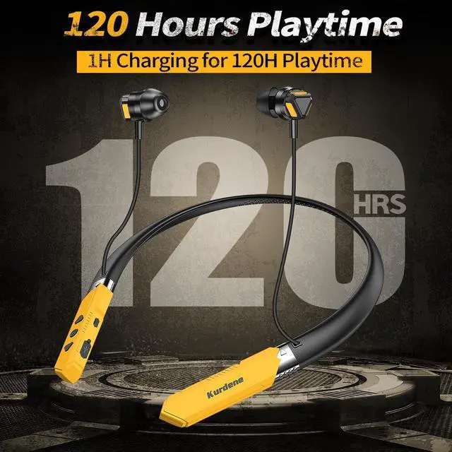 kurdene Neckband Bluetooth Headphones, 120H Playtime Wireless Bluetooth 5.4 Earbuds w/Mic in-Ear Magnetic Neckband Earphone, Low Latency Deep Bass Headset for Gaming, Traveling, Workouts