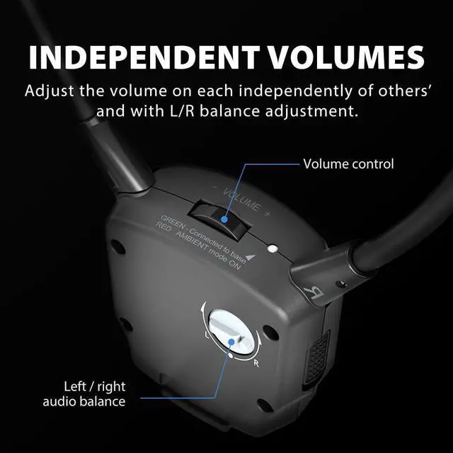 [INDEPENDENT VOLUMES] Adjust the volume on each pair of earbuds without affecting the volume level of others. Further customize your audio by adjusting each ears volume with left-right balance adjustment.