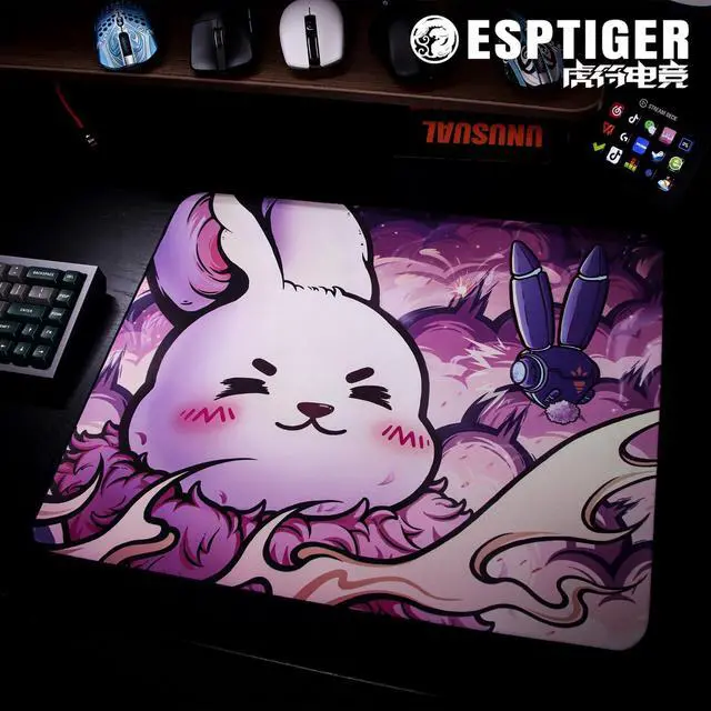 Mouse Pads EspTiger SheSheJia (480 x 400 x 4mm) Standard Size SlimFlex Water (Liquid) Repellent Fabric Smooth Cloth Large Gaming Mousepad Pink Rabbit Bunny Design