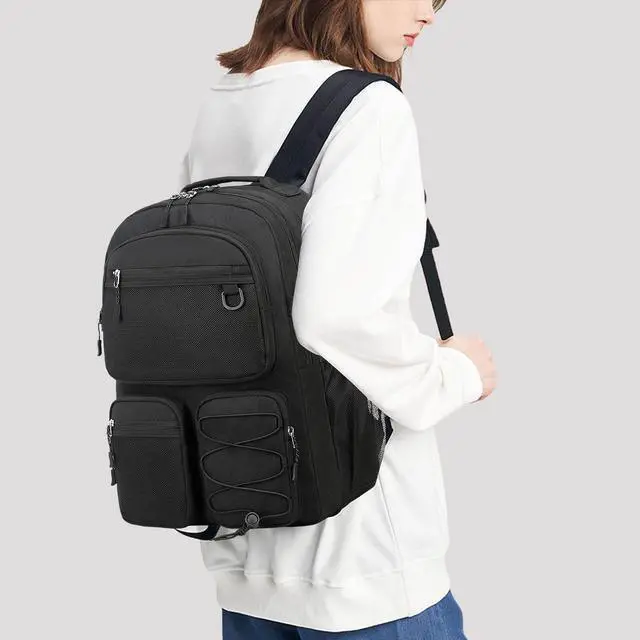 Lohol Water Resistant Daypack with Mulitiple Pockets for School Travel Outdoor College, 15.6 inch Laptop Backpack for Men and Women (Black)
