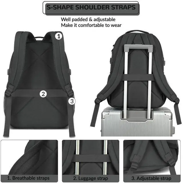 [Comfortable] - The shoulder starp is adjustable, you can adjust the lenth that suits yourselves, and luggage strap allows backpack fit on luggage/suitcase, slide over the luggage upright handle tube for easier carrying.