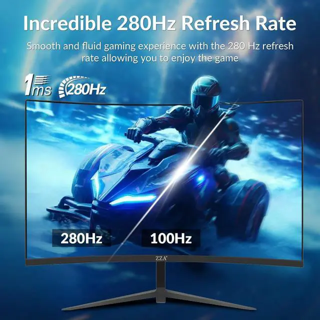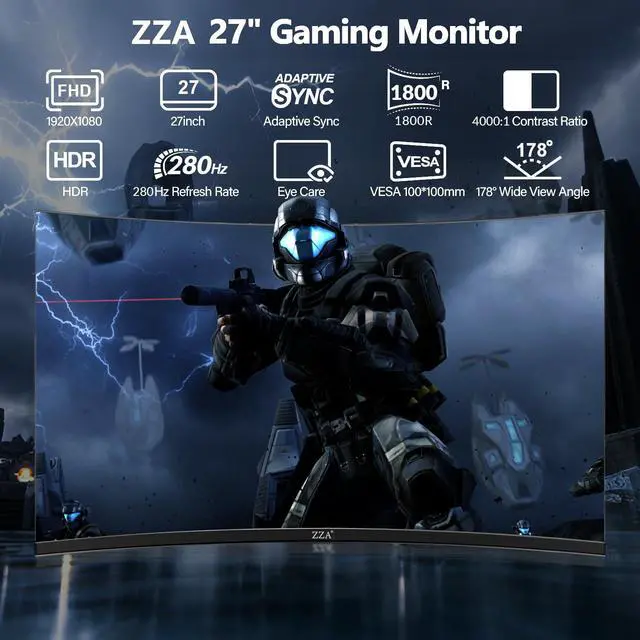 ZZA 27 inch monitor 280hz/240hz with 1920x1080 Full HD (1080P) Resolution Curved VA panel.Aspect ratio:16:9.Viewing Angle:178.0 degrees full HD gaming monitor 1800R curved 1ms freeSync for gaming, business, entertainment