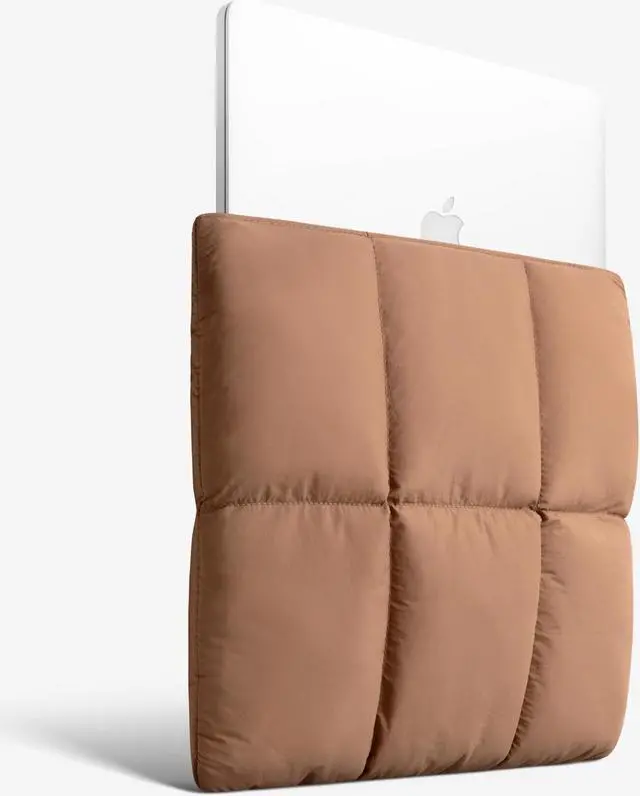 Comfyable Puffy Laptop Sleeve 15 Inch 16 Inch, Quilted Puffer Laptop Carrying Case, Pillow Pouch Compatible for MacBook Air 15 in M4 2025 & MacBook Pro 16 in M4 2024, Brown