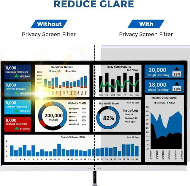 It doesn't take a professional hacker to break into your computer and steal your data. Sometimes while you're working away there may be a criminal lurking around watching and waiting for a chance to steal login, password and other valuable data. Even in the workplace you may have sensitive information visible on your computer screen that you want to keep to yourself. premium quality computer privacy filter blacks out the view from side angles (outside 60 degrees) while leaving the user's frontal view crystal clear. Only those looking right over your shoulder will see what you see.