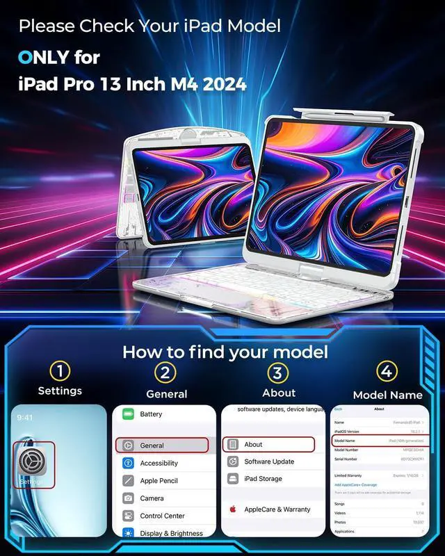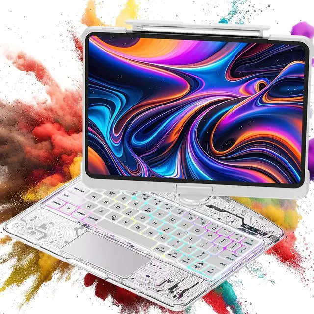 Experience: Premium Keyboard Case for iPad Pro 13-Inch (2024) Searching for the ultimate blend of style, protection, and productivity for your iPad Pro 13-inch? Meet your match. Precision-engineered for the iPad Pro 13-inch (M4), this premium keyboard case combines military-grade durability with cutting-edge design to safeguard your device while unlocking its full potential. 360° Rotating Stand + 5 Adjustable Angles Crafted with a reinforced aluminum alloy hinge, the smooth 360° rotating stand offers five secure viewing anglesperfect for typing, sketching, streaming, or video calls. Seamlessly transition between work and play without interrupting your flow. Uncompromising Protection, Unrivaled Style The scratch-resistant transparent hardback showcases your iPads sleek design, while reinforced TPU corners and a honeycomb shock-absorption layer guard against drops, bumps, and daily wear. A hidden magnetic Apple Pencil slot keeps your stylus secure and charged, blending practicality with minimalist elegance. Pro-Grade Keyboard & Touchpad Type with confidence on the ultra-responsive wireless keyboard, The enlarged glass touchpad supports intuitive multi-touch gestures and palm rejection, mirroring a laptop-like experience. The pressure-resistant, spill-proof acrylic surface ensures longevity, even in chaotic environments.
