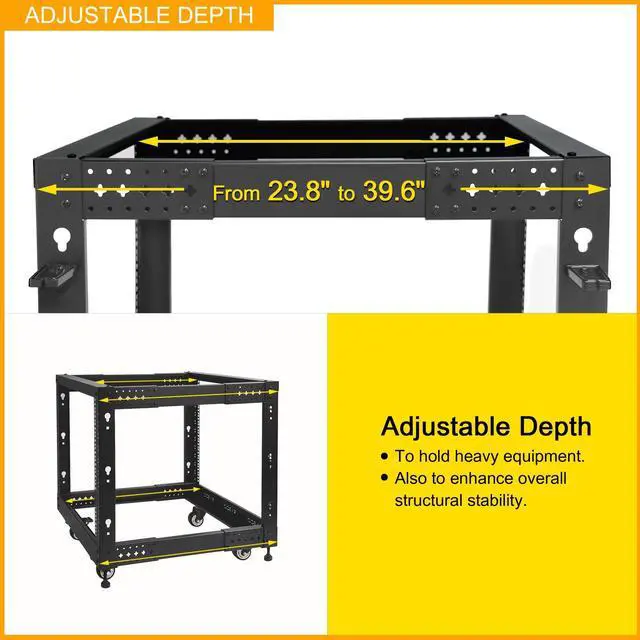 BROAD USAGE: The adjustable network rack with wheels is great choice for studio,office,AV,HIFI, home server,test lab,home lab,data centre,home theater,network switch, UPS and other 19 IT devices