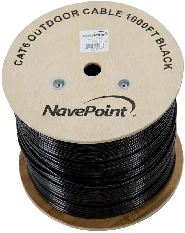 NavePoint's Cat6 Outdoor UTP (unshielded twisted pair) Direct Burial Ethernet Cable with true 23AWG/ 0.57 mm solid conductor is ideal for your indoor/outdoor voice, data, video and security networking applications. This waterproof, Indoor/Outdoor LDPE cable features 8 conductors (4-Pairs) of solid bare copper with an HDPE (High Density Polyethylene) insulation and an LDPE rated PVC Jacket. This cable has been tested up to 550 MHz and is suitable for 10Base-T, Fast Ethernet (100Base-TX), Gigabit Ethernet (1000 Base-T or 1000 Base-TX) and 10-Gigabit Ethernet (10GBASE-T)