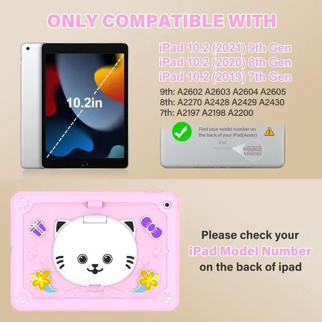 Compatibility : iPad 10.2 case 2021/2020/2019, Fits New iPad 9th Generation (Model number:A2602 A2603 A2604);iPad 8th Generation (A2270 A2428 A2429 A2430);iPad 7th Generation (A2197, A2200, A2198)NOT compatible with any other versions of iPad. Please check the model number of your iPad on the back before purchase (With Screen Protector)