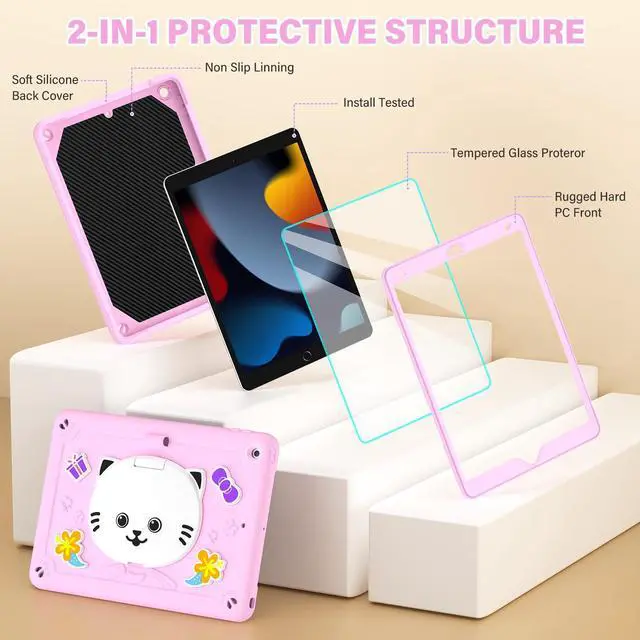 Exclusively Designed : This case for iPad 9th generation kids Premium Soft silicone rubber and hybrid hard PC + front hard PC bumper 2 in 1 design easier to install and remove than three layer with stands daily drop, bump and shock with four corner cushioning for protection, suitable for the Kids girls and adults (This ipad 10.2 inch case)