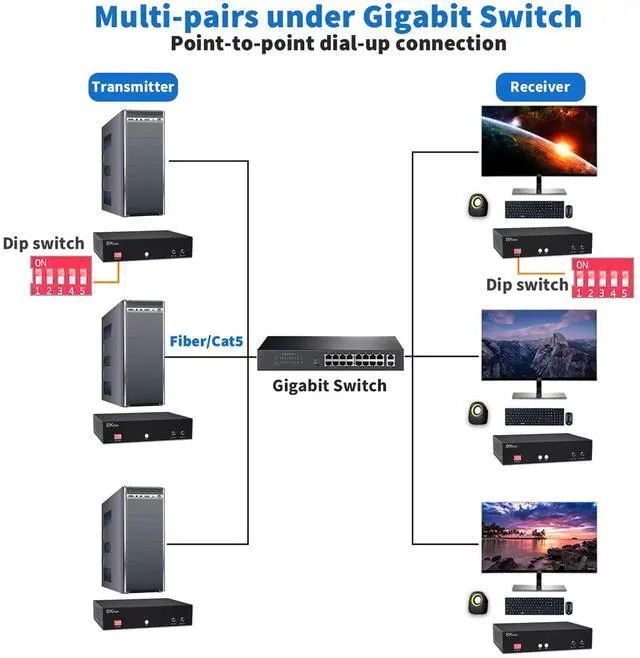 DIP Switch: Supports point-to-point dial-up connection.Using a Gigabit network switch, ex