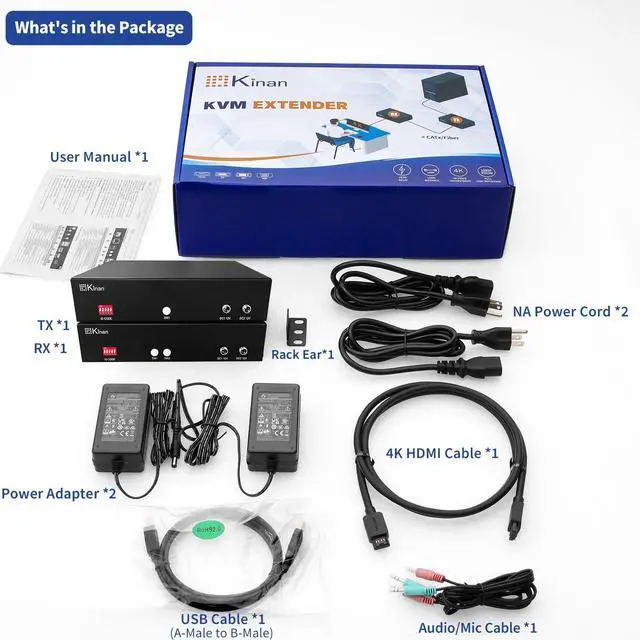 High-Speed USB 2.0 transparent transmission: The 4K HDMI USB KVM Extender supports a wide range of USB peripherals, including encrypted USB disks, face recognition devices, and other USB devices, connected via the built-in 4-port USB hub.