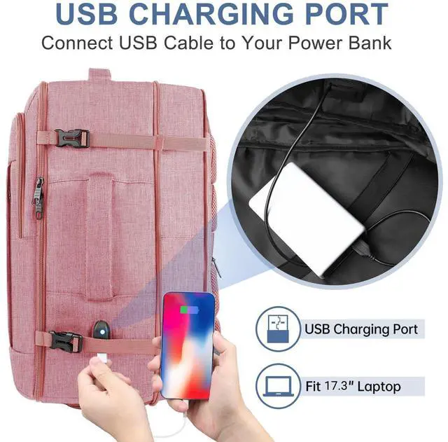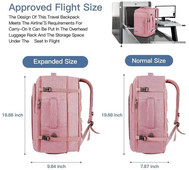 Gieury Carry On Backpack for Women, 50L Travel Backpack Flight Approved, Expandable Backpack For Airplanes, 17 Inch Laptop Backpack, Luggage Suitcase Daypack Lightweight Business Weekender Bag, Pink