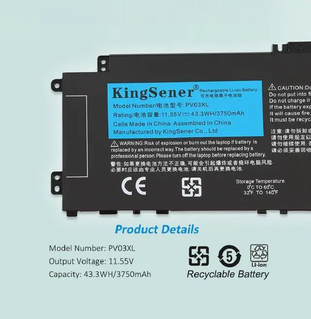 Specification:Model Number:PV03XL.Capacity: 43.3WH/3750mAh. Voltage: 11.55V. High quality built-in circuit protection board guarantee durable usage and safety.