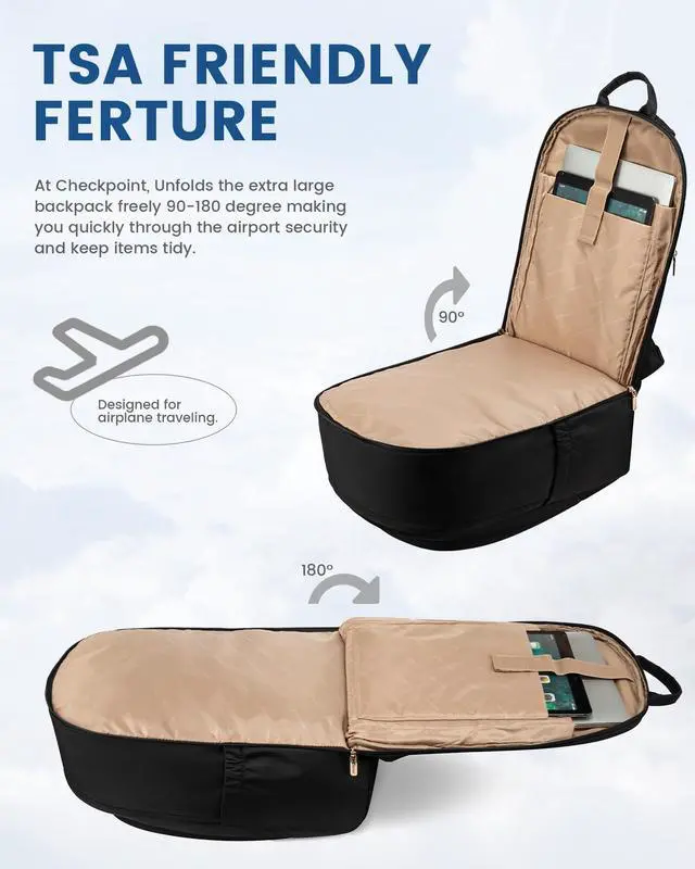 Laptop Protection&180° Wide OpenThe backpack features a specialized 180° wide-opening laptop compartment for easy access to your computer and convenient screening. The thick, padded interior provides extra protection to ensure your device is always safe and stable.