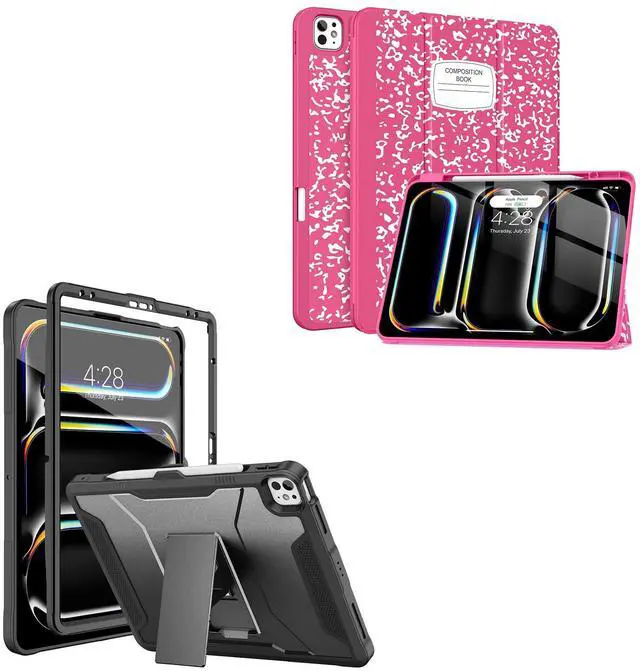 1*Soke Case for New iPad Pro 13 Inch (M4, 2024 Release), with Pencil Holder Trifold Stand Shockproof [Support Apple Pencil Charging + Auto Wake/Sleep], Soft TPU Back Cover, Book Hot Pink