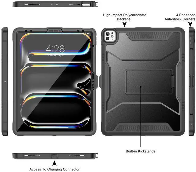 1*Soke Case for iPad Air 13 Inch M2 2024, iPad Pro 13 Inch M4, iPad Pro 12.9 (2022 2021 2020, 6th/5th/4th Gen), Rugged Shockproof Protective Cover with Built-in Kickstand for Apple Pro 13 - New Black