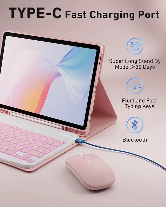 TUNKARMOR for iPad A16 11th / 10th Generation Case with Backlit Keyboard - 7 Color Change for iPad 10th Gen 2022 & 11th Gen 2025 A16 10.9 /11 inch Cover - Built-in Pencil Holder with Mouse - Pink