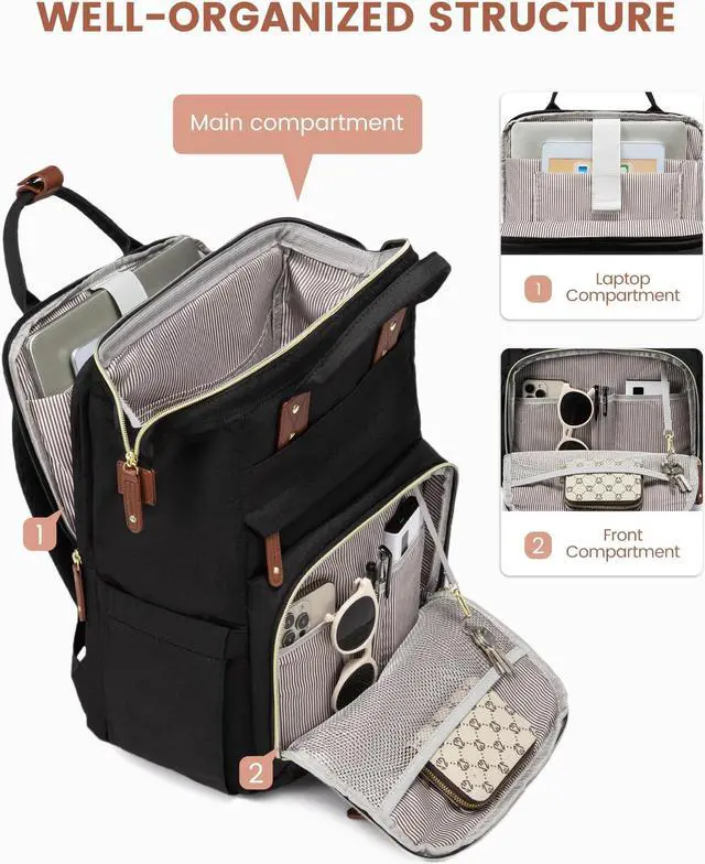 ORGANIZED WORK BACKPACK FOR WOMEN: Equipped with 22 pockets and 4 compartments, this work bag for women keeps your items well-organized. The independent padd
