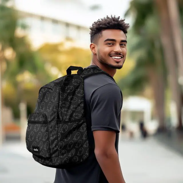 Premium padded backpack with Dalix Ghost stylish prints for travel, textbooks, events, and hikes. Perfect for adults men and women.
