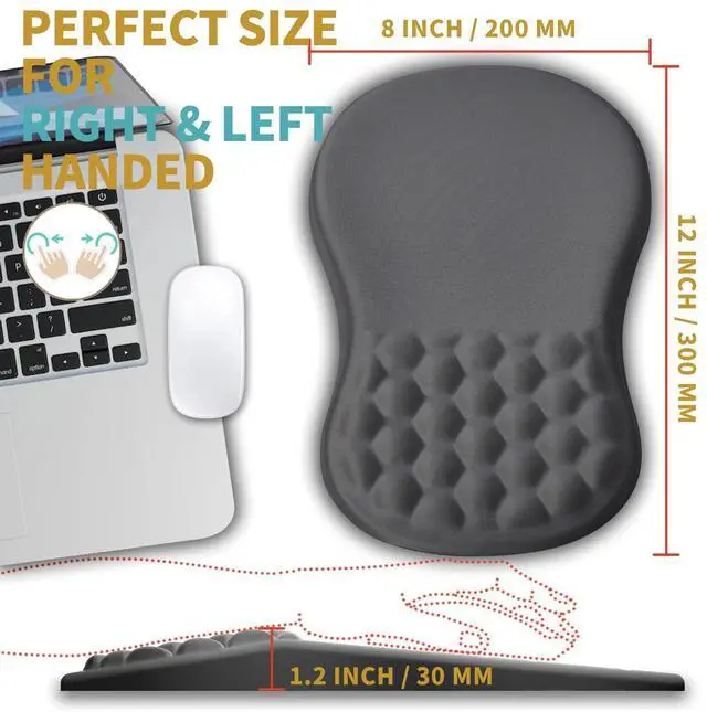Ergonomic Massage DesignThe innovative ergonomic 8-degree slope and massage bump design perfectly support the wrist and palm. Massage bump design can effectively relieve wrist pain and fatigue, improve carpal tunnel syndrome (CTS), strengthen the air circulation between wrist and mouse pad, prevent sweating, and keep your wrist in the most comfortable state.
