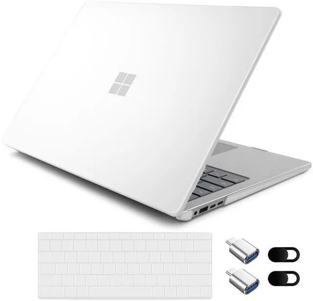 Protect your Surface Laptop 15" Copilot+ PC 2024 in style with this ultra-clear hard shell case. Designed for students and professionals, it showcases your laptops sleek design while providing durable protection against scratches, dust, and daily wear. Lightweight and precisely molded, the two-piece snap-on design allows for easy installation and full access to all ports. Anti-slip rubber feet keep your laptop steady on desks or lecture tables. Includes a TPU keyboard cover to prevent spills and grime, a USB OTG adapter, and a webcam cover for privacyperfect for both campus life and the office.