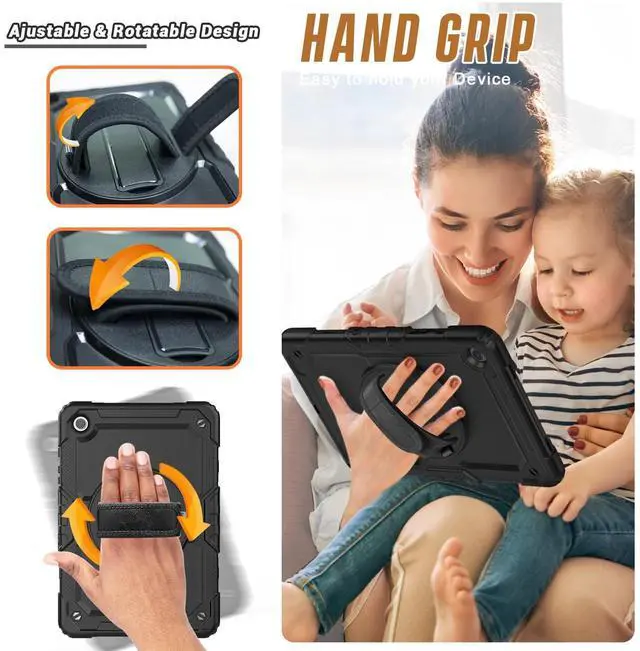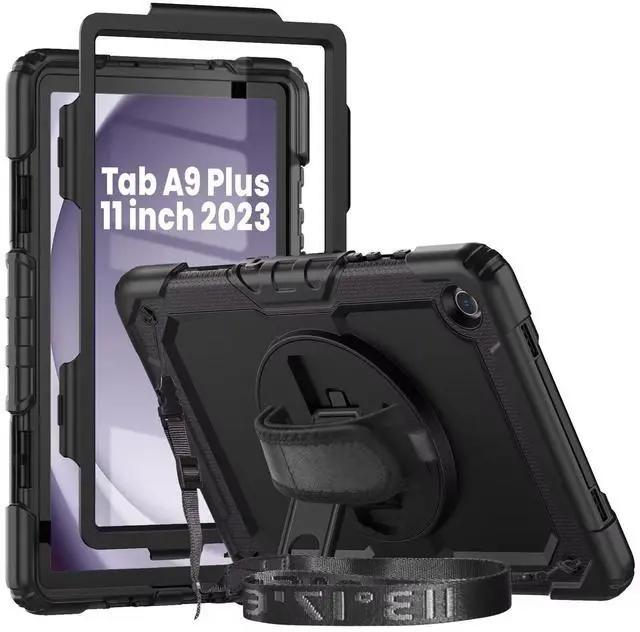 Built-in 360 Rotatable Kickstand and Hand Strap : 360-degree rotating swivel stand supports position of 3 angles(Vertical, Horizontal, and Halfway between), ideal for watching videos, conferences and travelling. Soft rotating handle strap prevents falling of samsung galaxy a9+ 11 tablet, featuring convenient use for school teachers, students, waiters, doctors, nurses and conference presenters.