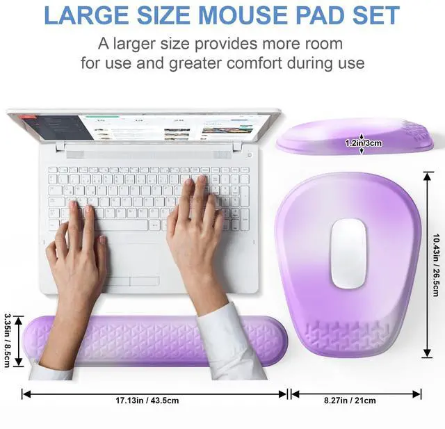 Mouse Pad with Wrist Rest The surface is made of silky and superfine Lycra fabric, which is skin-friendly, mouse-friendly, and breathable. Crafted with 100% memory foam, this set provides long-lasting support that won't deform over time like gel alternatives. It ensures the accuracy and consistency of the mouse and is suitable for all types of wired and