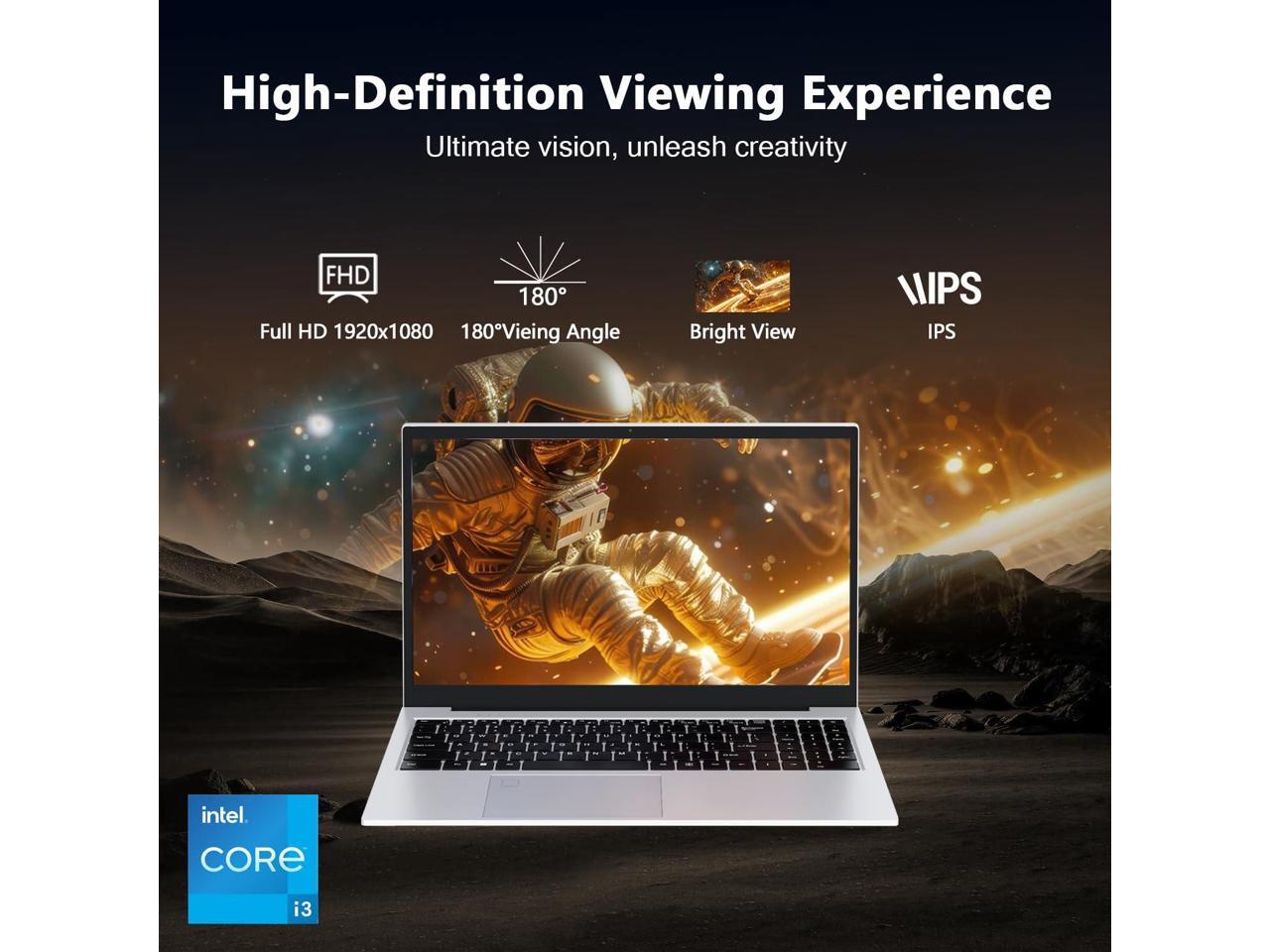 - 3. 15.6" FHD Laptop Gaming Display Ultra-thin bezel IPS screen (1920x1080) delivers 178° viewing angles for immersive laptop gaming visuals. HD webcam streams Twitch gameplay or nails Zoom calls with crisp details.