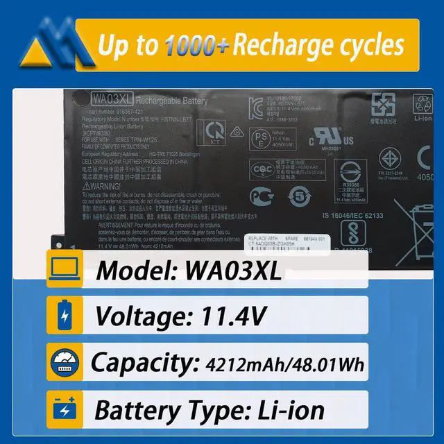 Tech Specs & 100% New Products Model:WA03XL Voltage:11.1V Capacity:48.01Wh/4212mAh Battery type: Li-ion. (We only use grade A battery cells that provide up to 500 recharge cycles over the life of the battery. Come with screwdrivers.)