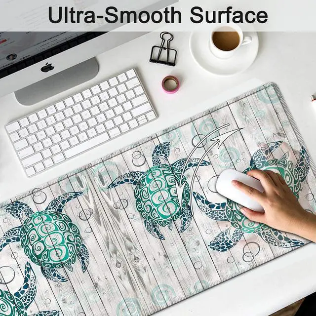 Large Gaming Mouse Pad,Extended Waterproof Desk Pad Protector (31.5" x 11.8")Ergonomics Memory Foam Mouse Wrist Rest Support,for Home Office Laptop Easy Typing,Ocean Turtle Sea Turtle White Mouse Mat