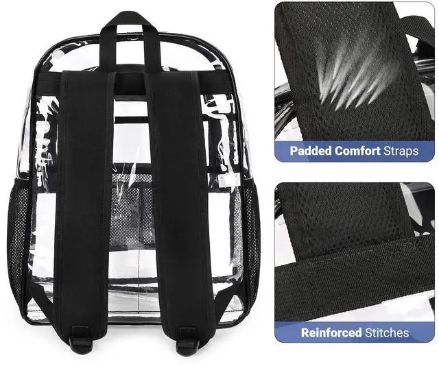 Comfort Padded Straps: Zorfin heavy duty clear backpack is equipped with ruggedly reinforced shoulder straps for added strength when carrying heavier loads. The wider, padded, and adjustable straps provide comfort and ease stress. Equipped with two-way smooth zippers and reinforced stitches, this tran