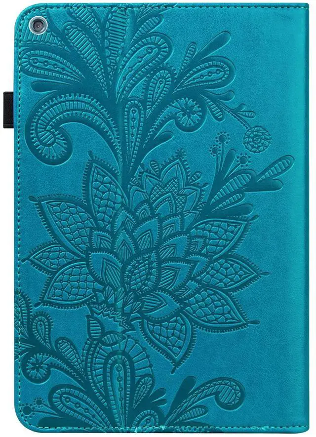 UUcovers Fire HD 10 Case 9th/7th/5th Gen (2019/2017/2015) with Pencil Holder [Auto Sleep/Wake] Elastic Band Pocket Multi-Angle Stand Magnetic Folio PU Leather TPU Shockproof Cover, Blue Flower
