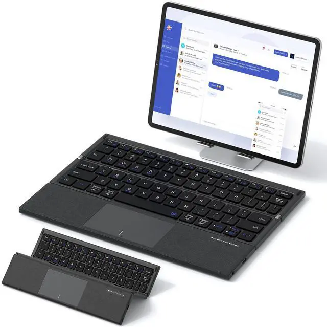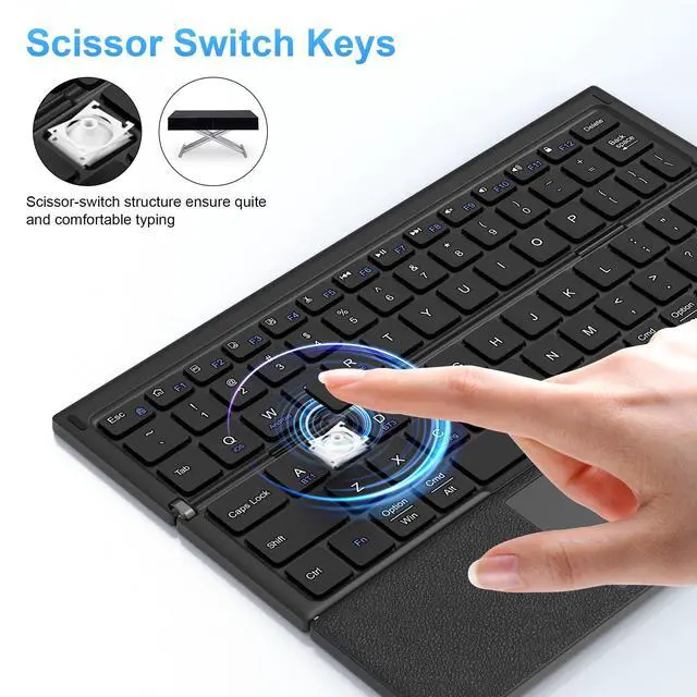 Foldable Keyboard with Trackpad: This portable keyboard features a multi-touch trackpad that adapts to Win or IOS and a variety of trackpad gestures that provide a comfortable experience when clicking, scrolling and more. Very convenient for you to type, browse and work without a mouse. (Note: See manual for details of touchpad gestures for each system).