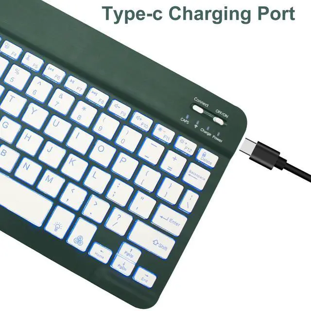 [7 Color Backlit Keyboard]7-color backlit and wireless keyboard allowing you to type easily in the dark environment. The functional shortcut keys make it easier for you to use your device. Comes with 1 Type-C charging cables