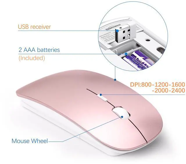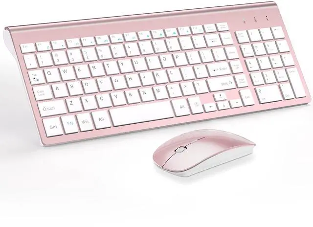 Wireless Keyboard and Mouse Ultra Slim Combo, TopMate 2.4G Silent Compact USB 2400DPI Mouse and Scissor Switch Keyboard Set with Cover, Batteries Included, for PC/Laptop/Windows/Mac - Rose Gold White