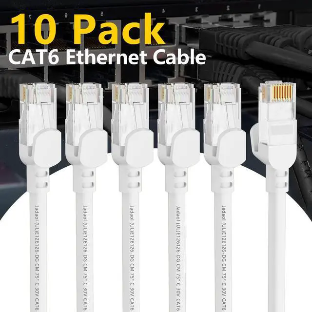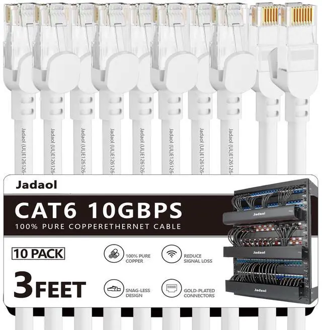 Jadaol Cat 6 Ethernet Cable 3 ft 10Pack, Outdoor&Indoor, 10Gbps Support Cat8/7 Network, 24AWG Pure Copper Patch LAN Cord, Direct Burial Waterproof UV Resistant for Router, Modem, Switch, Server, White