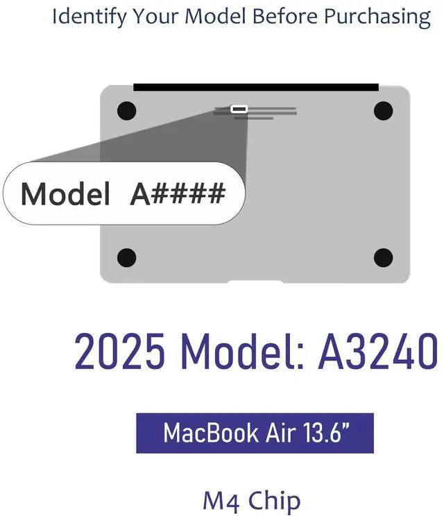 COMPATIBILITY Only Compatible with 2025 Macbook Air 13.6" (Model A3240, M4 Chip). Kindly check the model number "A****" on the back of the laptop before your pruchase.